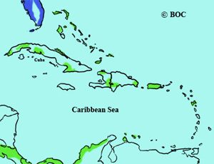 The Chimney Swift is the most common swift found in North America. Although, with this said, there is a great concern for this swift. It has raised its young in the chimneys of homes and any commercial sites available. Today, chimneys are far and few, leaving these birds to seek out alternative nesting sites. This plain grey-coloured bird is seen over all areas of eastern North America. It has been reported seen in Cuba.