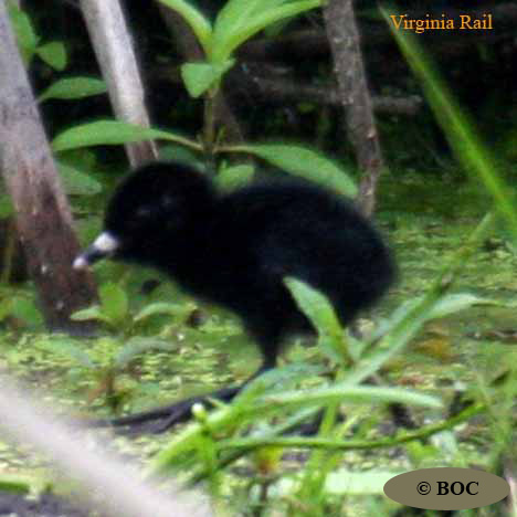 The Virginia Rail is the smallest rail when compared to the Clapper and King Rails. Although, it is very similar in appearance to these two mentioned rails. The Virgina Rail can be found in most marshes in North America, but because of its secretive nature and the fact it feeds at night, it is rarely seen. It has been reported seen as a very rare visitor in Cuba.